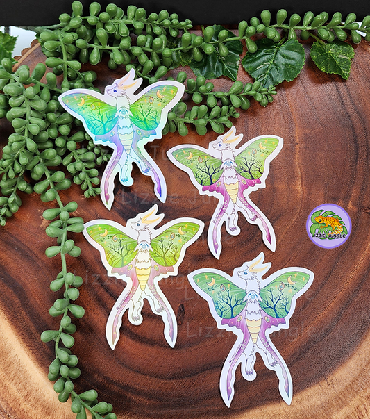Luna Moth Dragon :: Holographic Vinyl Sticker