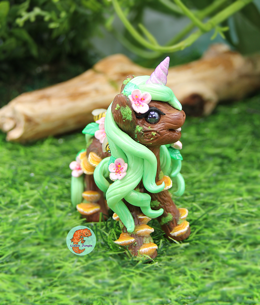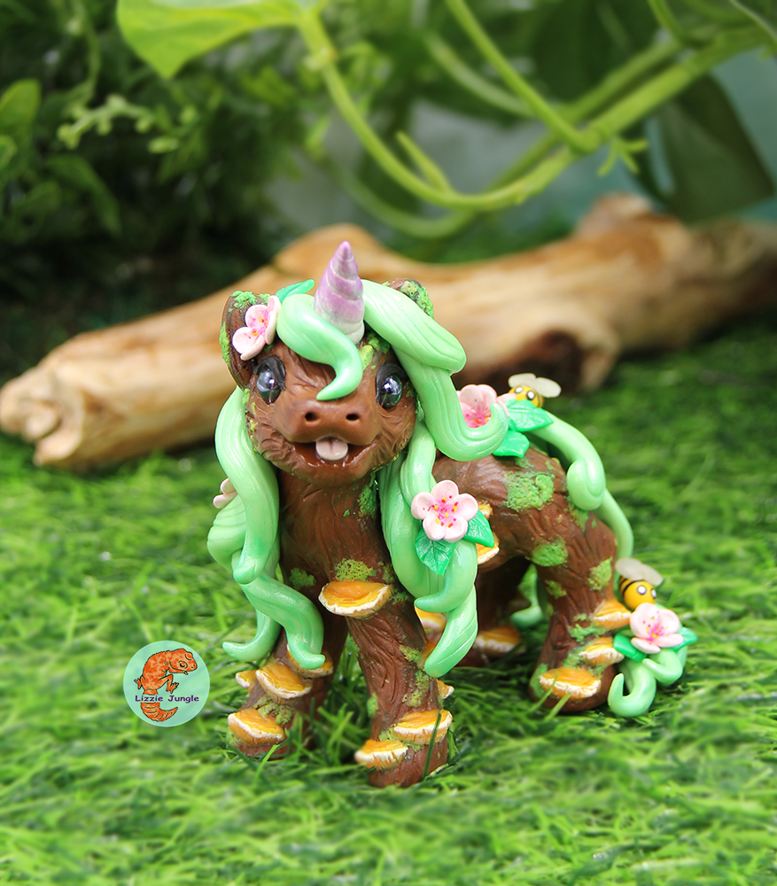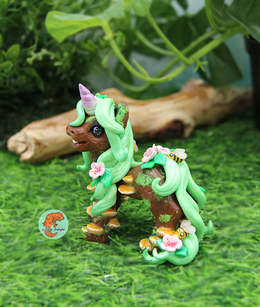 She is made of high quality flexible polymer clay that will last a life time. The clay is waterproof and its color will not dry out or fade. She is one of a kind (OOAK) Forest Unicorn.