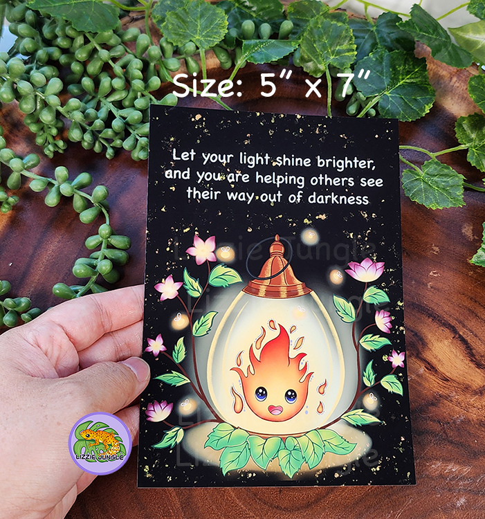 Cute Calcifer Magic Lantern art print with positive quotes.
