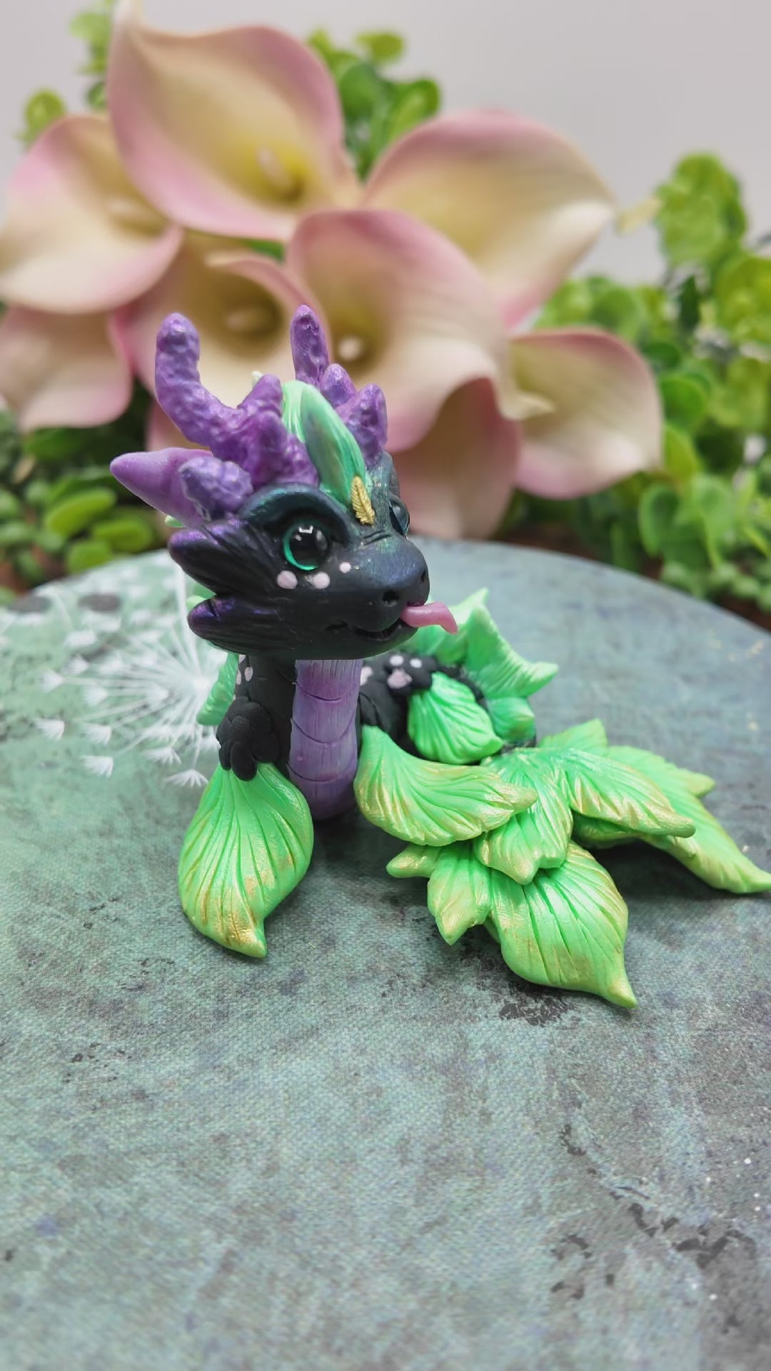 She is made of high quality flexible polymer clay that will last a life time. The clay is waterproof and its color will not dry out or fade. She is one of a kind (OOAK) Plant Water Dragon.