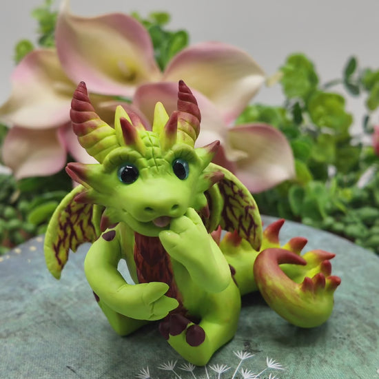 He is made of high quality flexible polymer clay that will last a life time. The clay is waterproof and its color will not dry out or fade. He is one of a kind (OOAK) Plant Guardian Dragon.