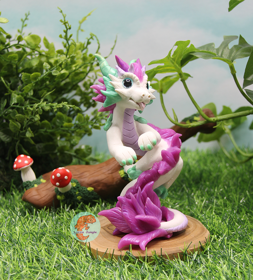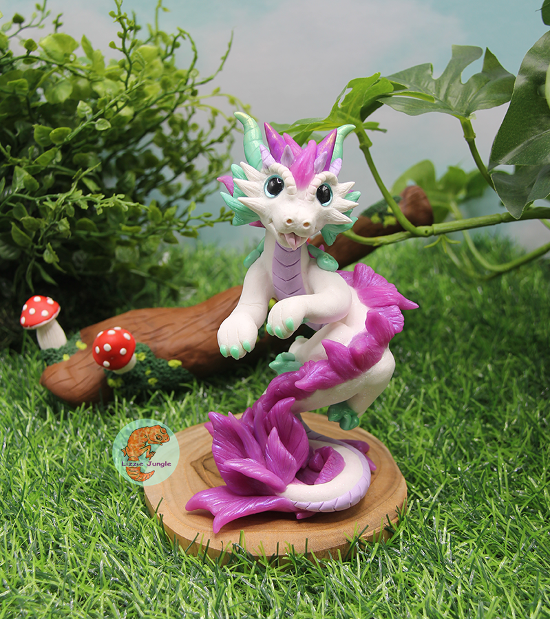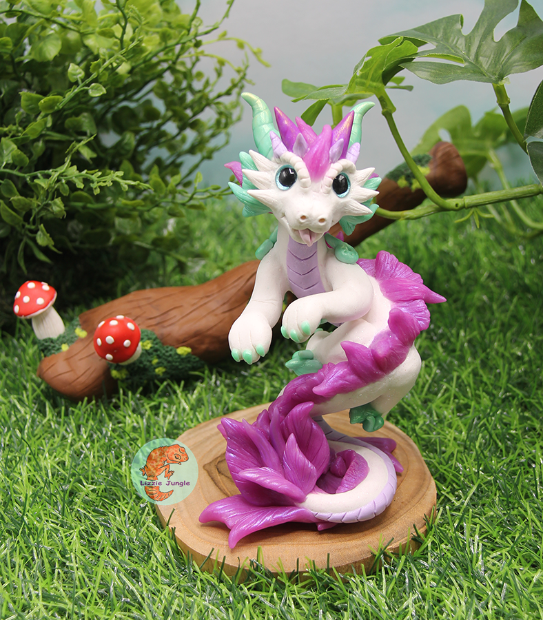 She is made of high quality flexible polymer clay that will last a life time. The clay is waterproof and its color will not dry out or fade. She is one of a kind (OOAK) White Water Serpent Dragon.