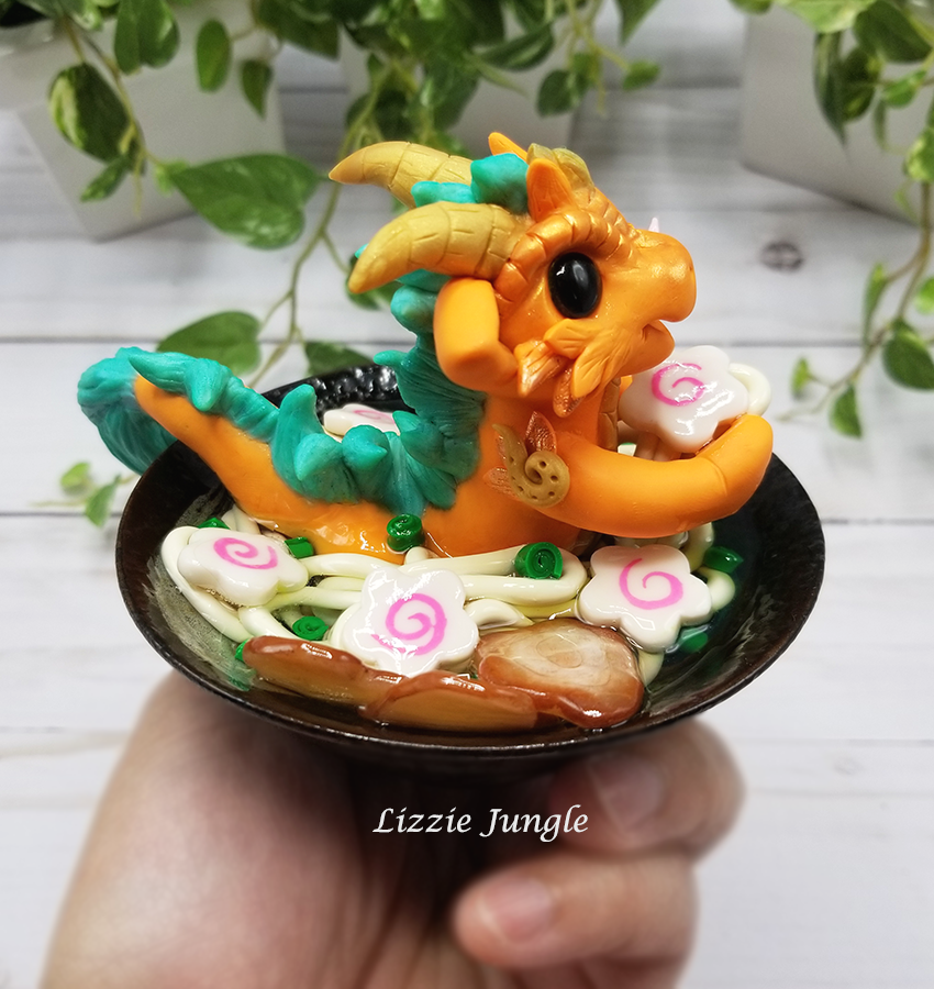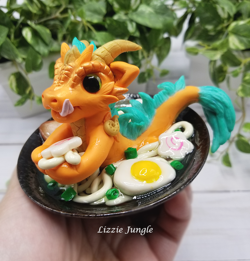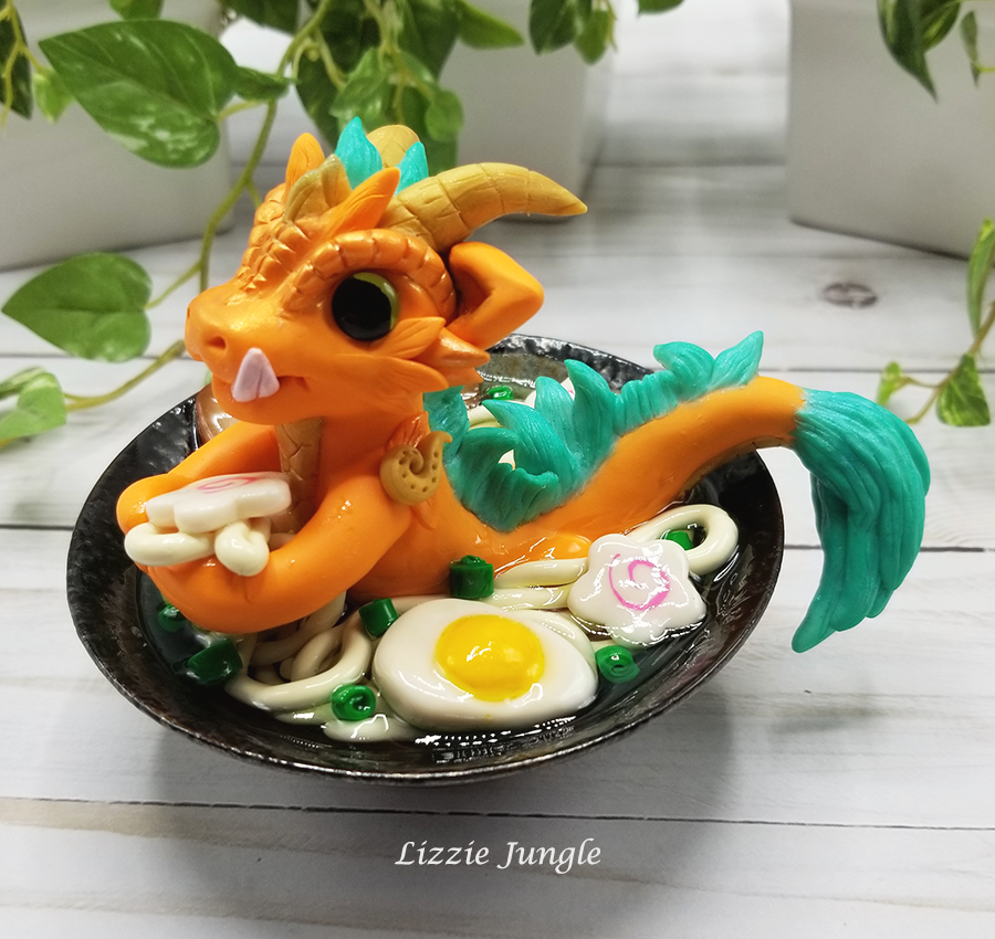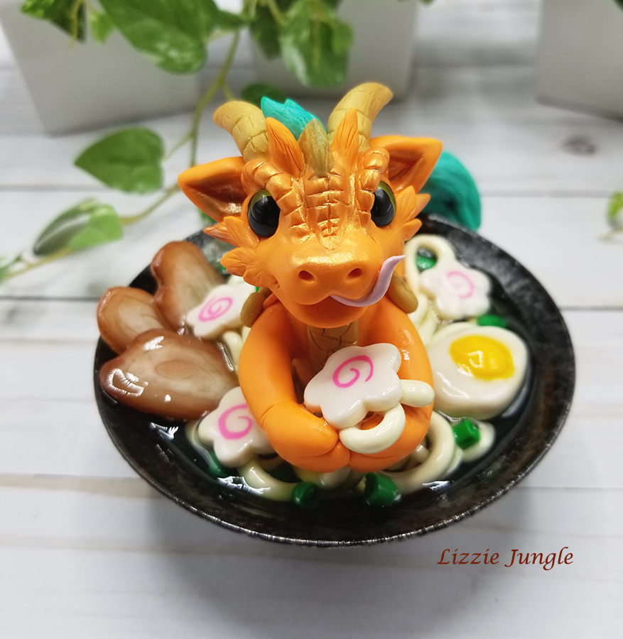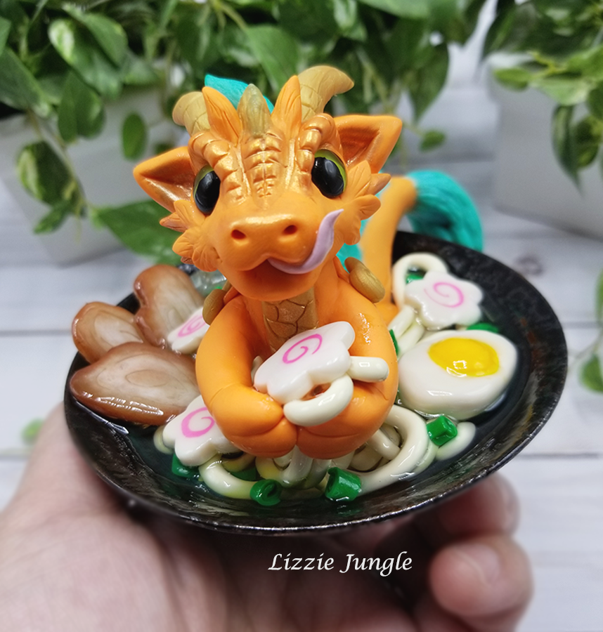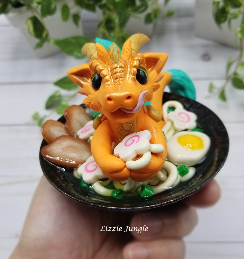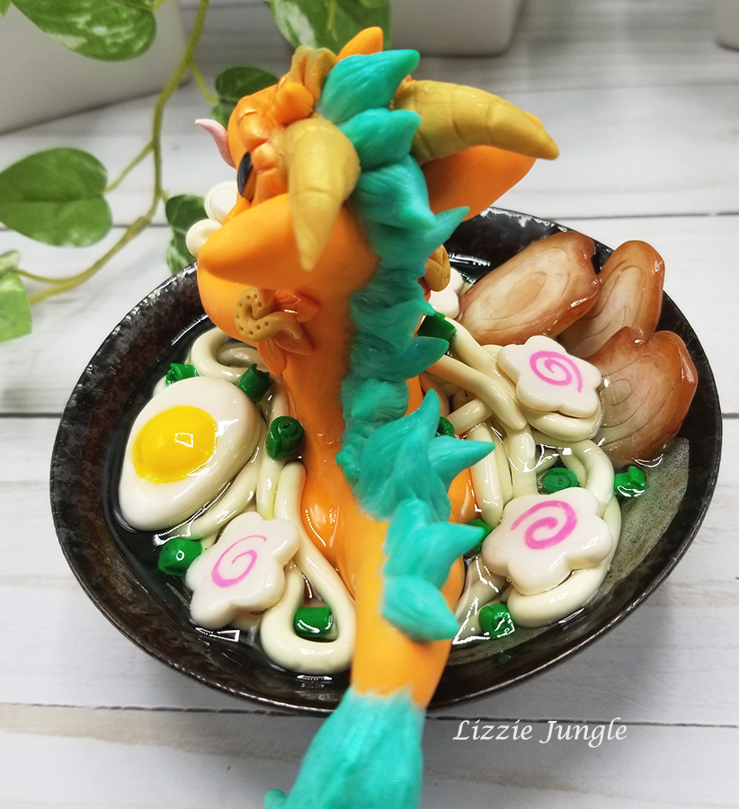 Tatsuya, the sneaky orange dragon, would be so happy to get it off your hands. He would like to swim in it while enjoying every bit of the yummy ramen. 😁 Could you be mad at this cute little dragon?