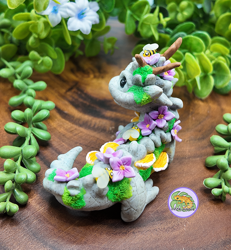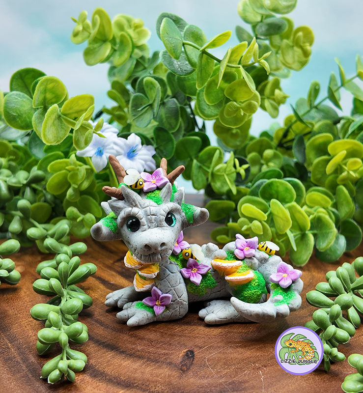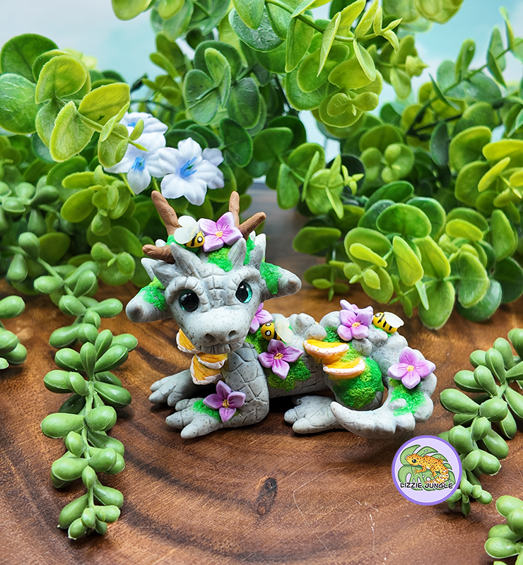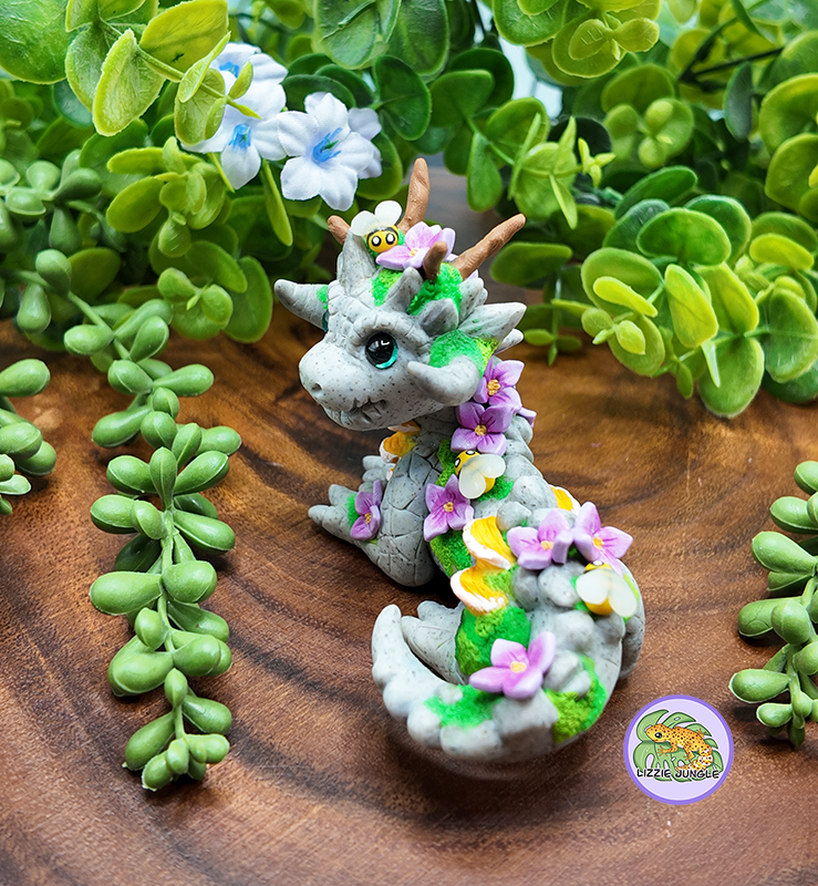 He is made of high quality flexible polymer clay that will last a life time. The clay is waterproof and its color will not dry out or fade. He is one of a kind (OOAK) fantasy Forest Guardian Dragon.